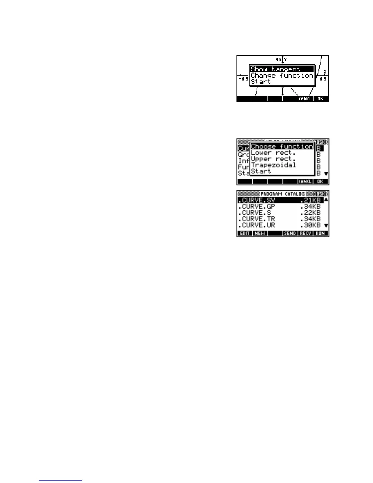 VIEWS menu for an aplet called “Curve Areas”