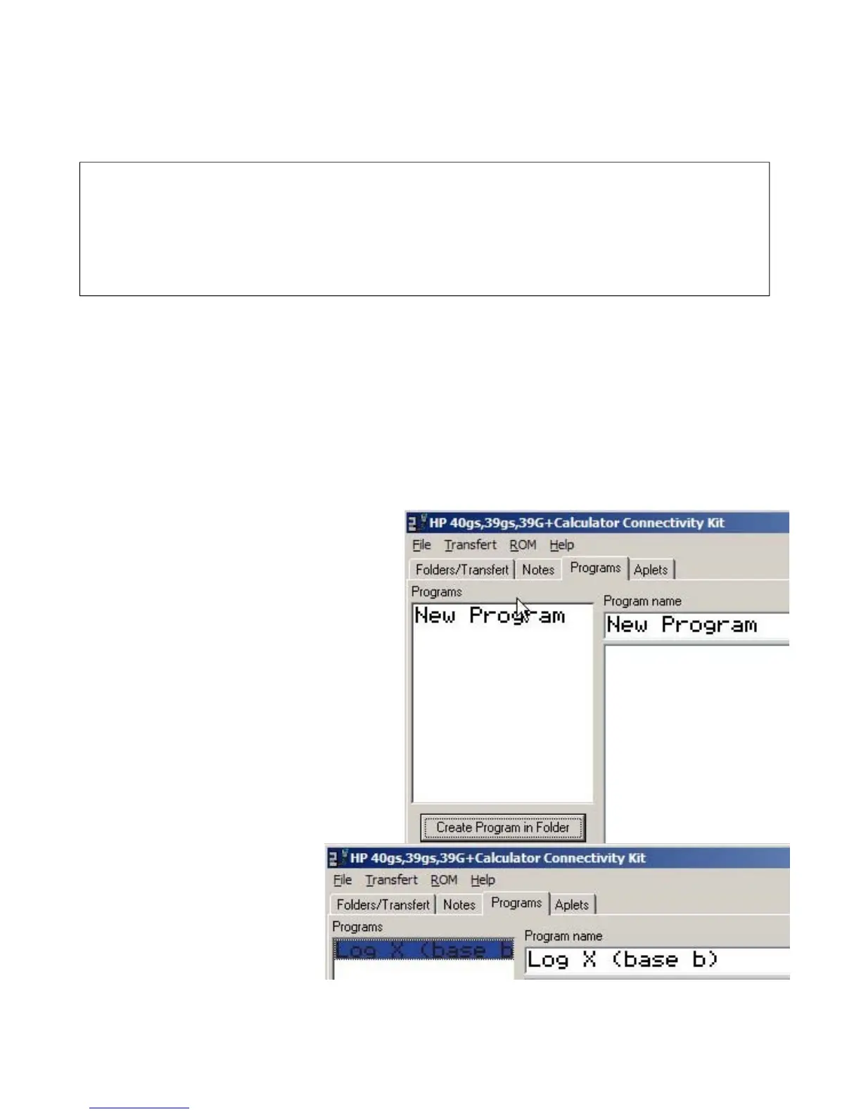 Example program “Log X (base b)”