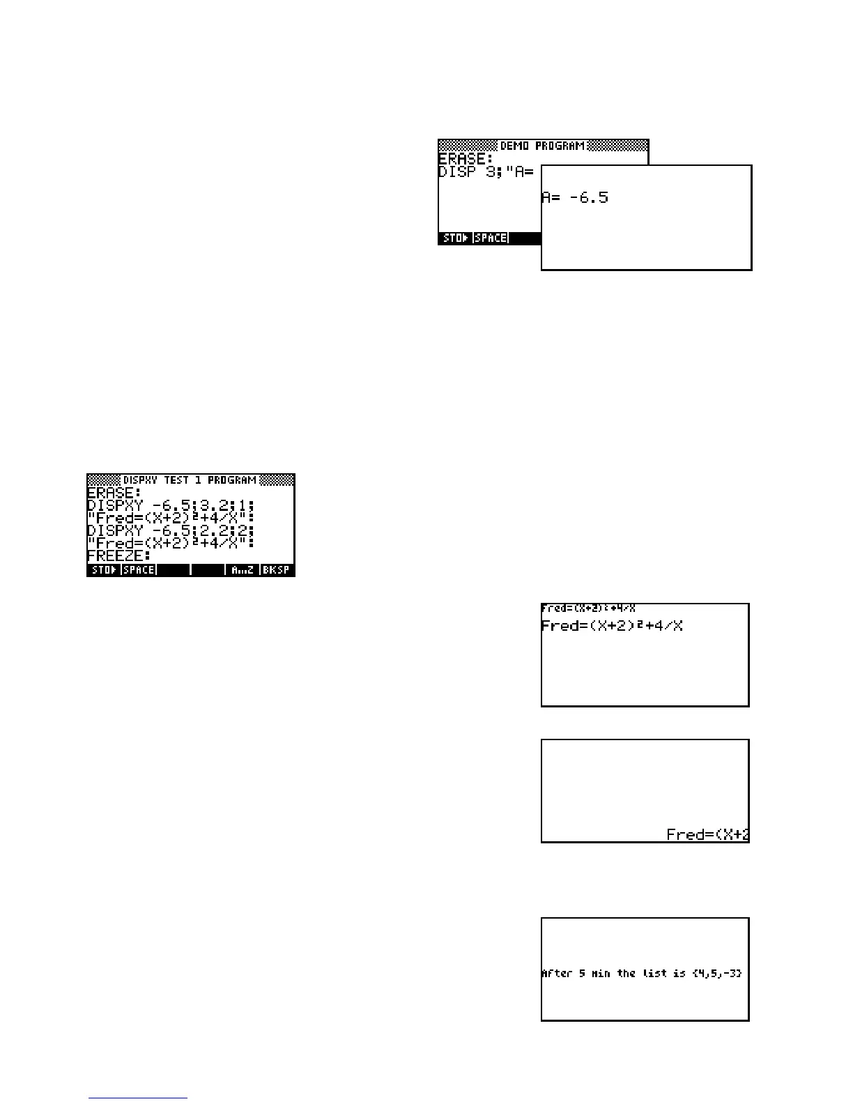 DISPXY -6.5;0;1;"After "N" min the list is "L0: