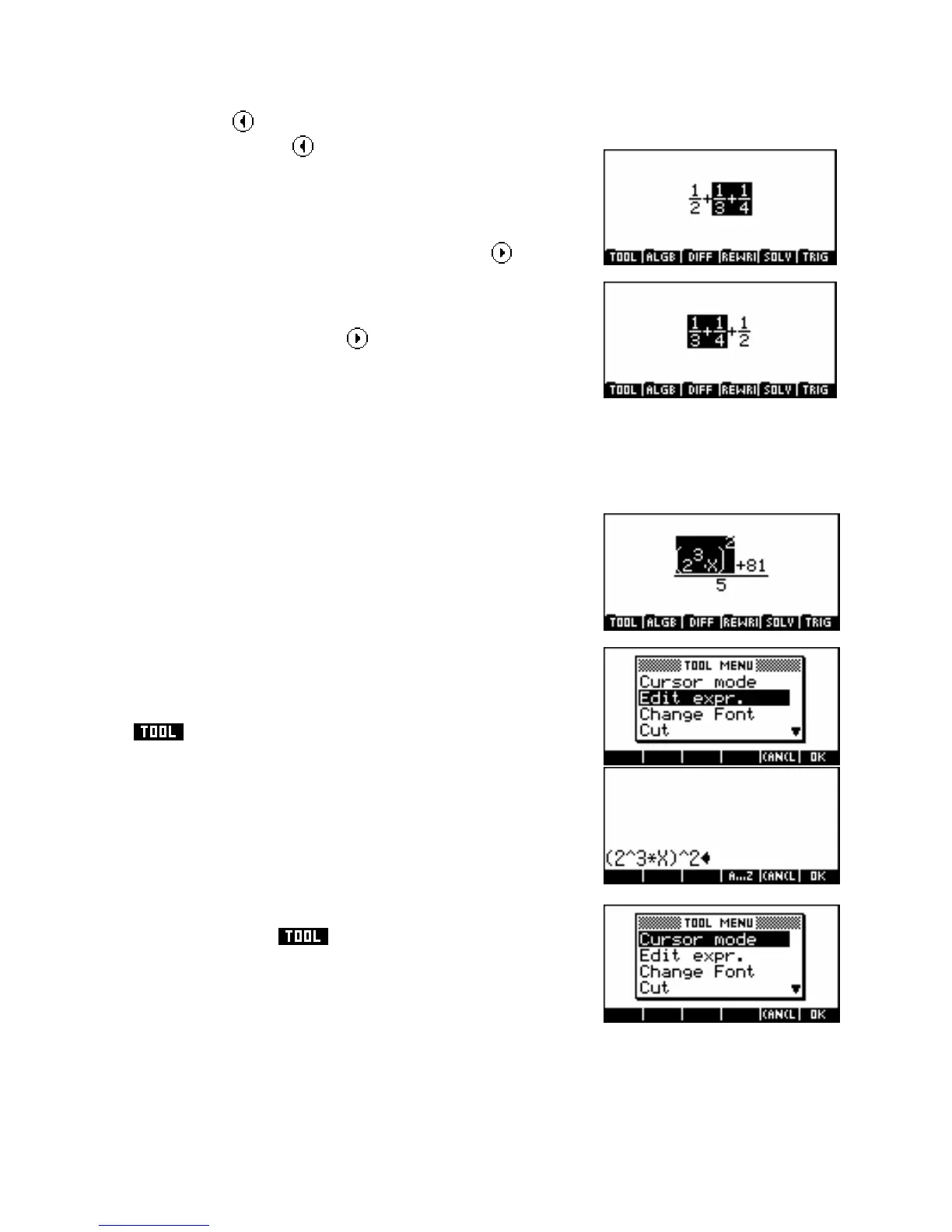 Cursor mode can be used to select portions of an expression by drawing