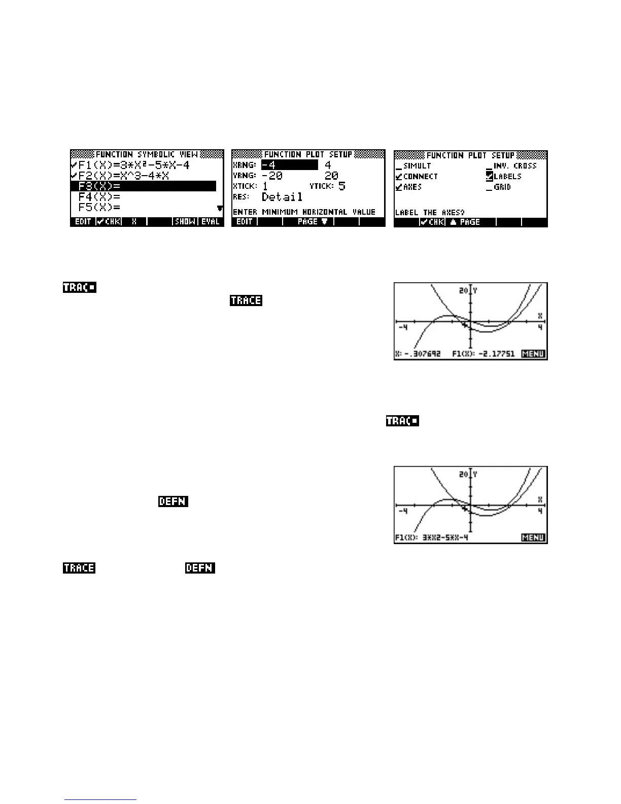 The up/down arrows will move the cursor from F1(X) to F2(X), with the definition changing as it does so. If