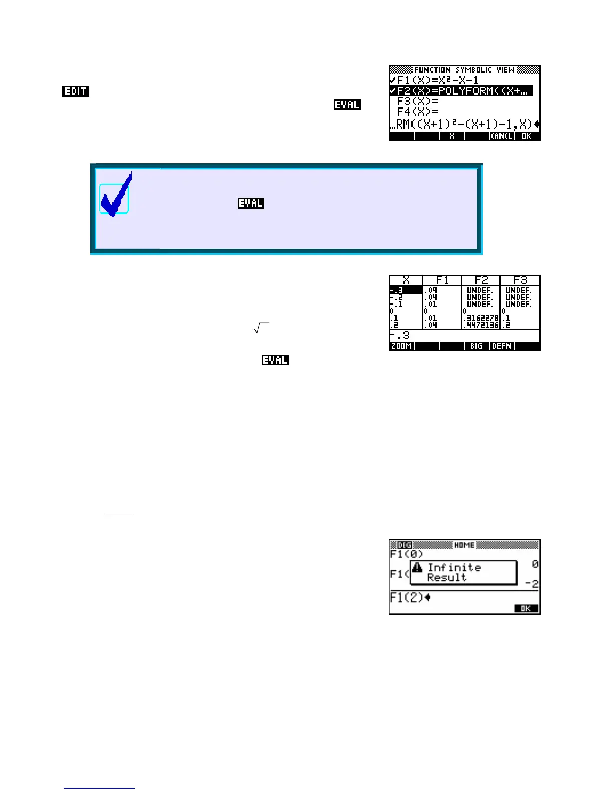 F1(1), F1(2) and F1(3). Notice the error message for x = 2 caused by