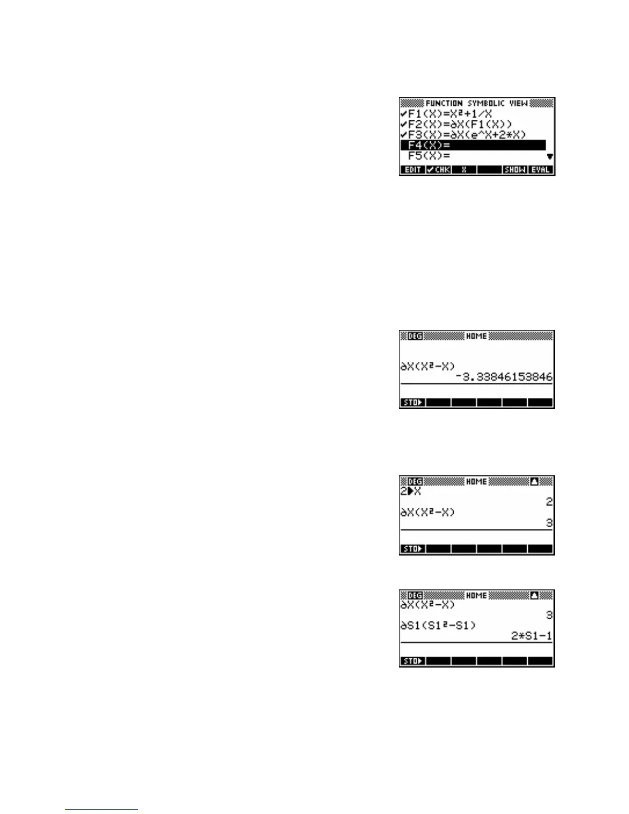 SYMB view of the Function aplet as shown in functions F1(X) and