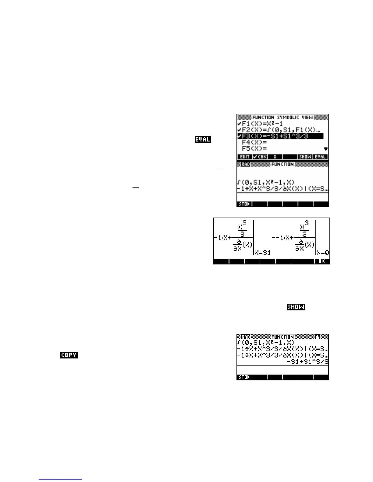 • If done in the SYMB view of the Function aplet, then the integration must be done using the symbolic