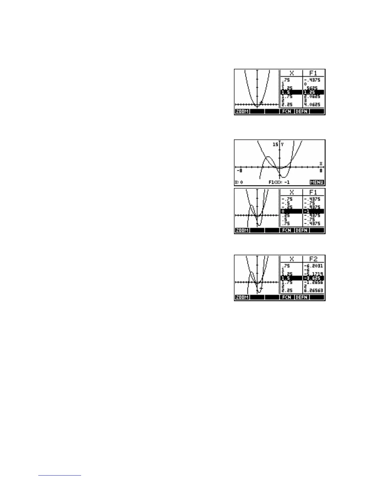 F1(X). The left/right arrow keys move within that function, with