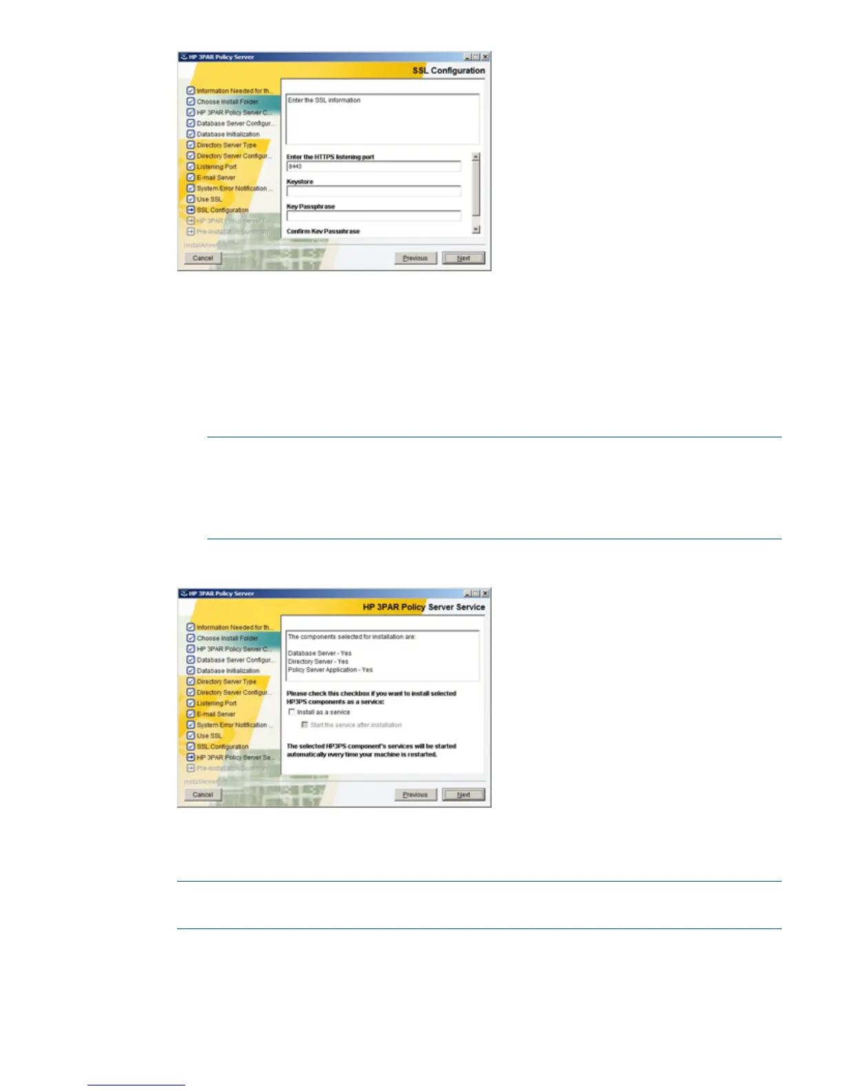 13. Click Next to display the HP 3PAR Policy Server Service screen, shown in the following figure: