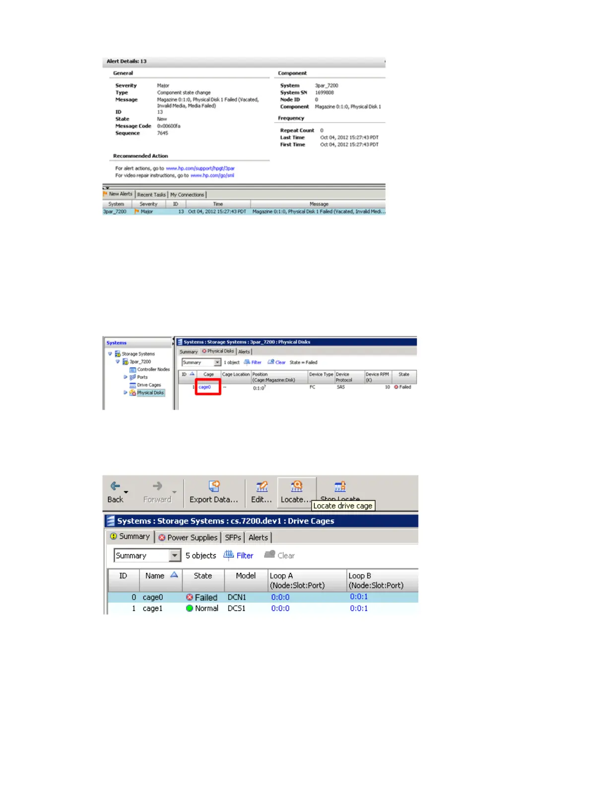 2. Select the Cage link for the Failed drive (see Figure 34 (page 34)).