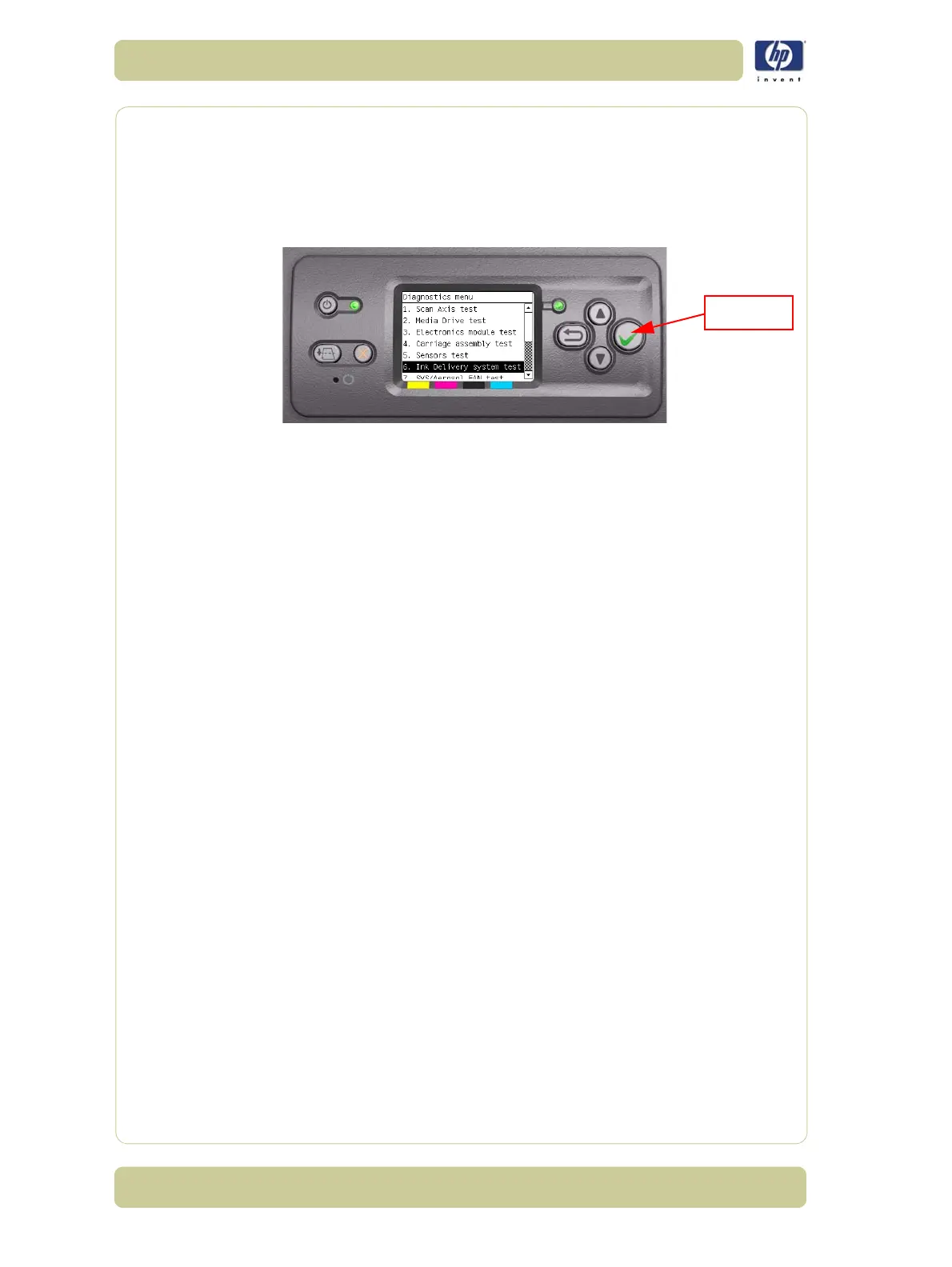 1 In the Diagnostics Tests submenu, scroll to "6. Ink Delivery System Test" and