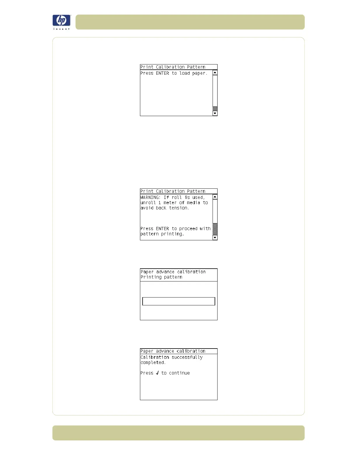 8 The Printer will start to print the Paper Advance Calibration Pattern. This