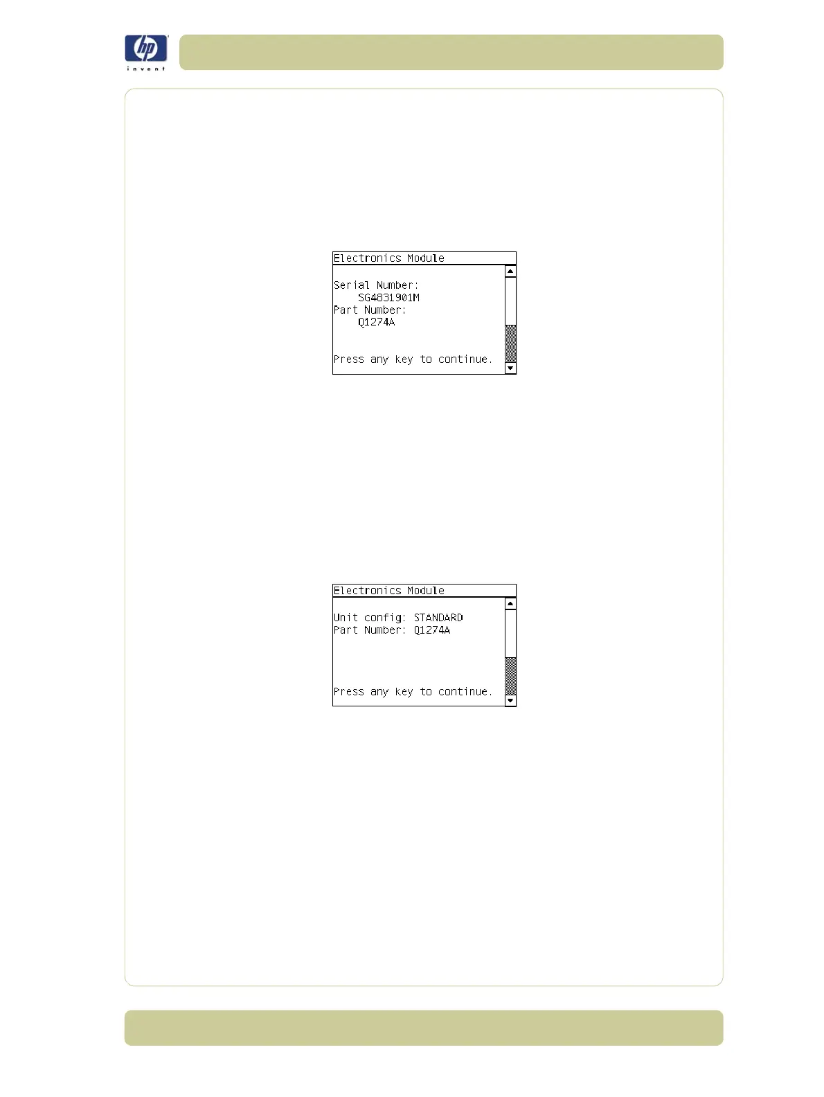 information on the Front Panel. Press any key to continue the test: