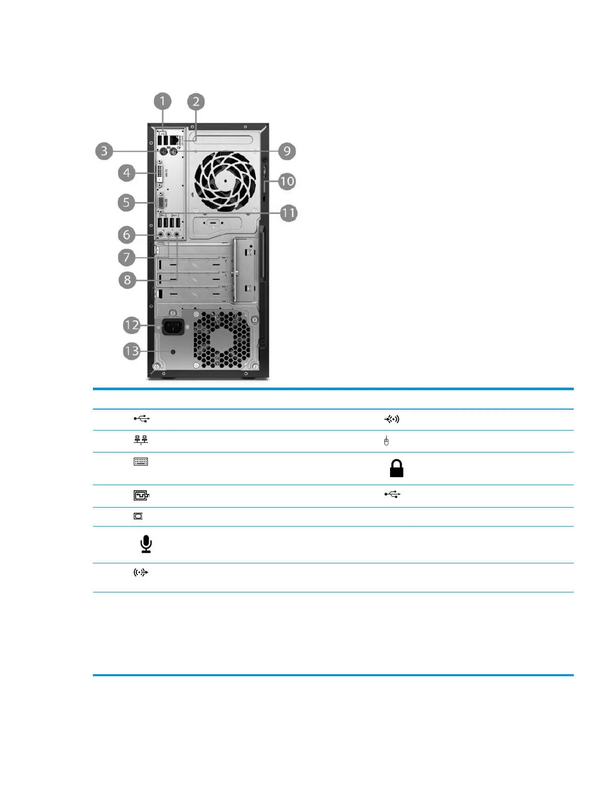 1 USB 2.0 ports (black) 8 Line-in audio connector (blue)