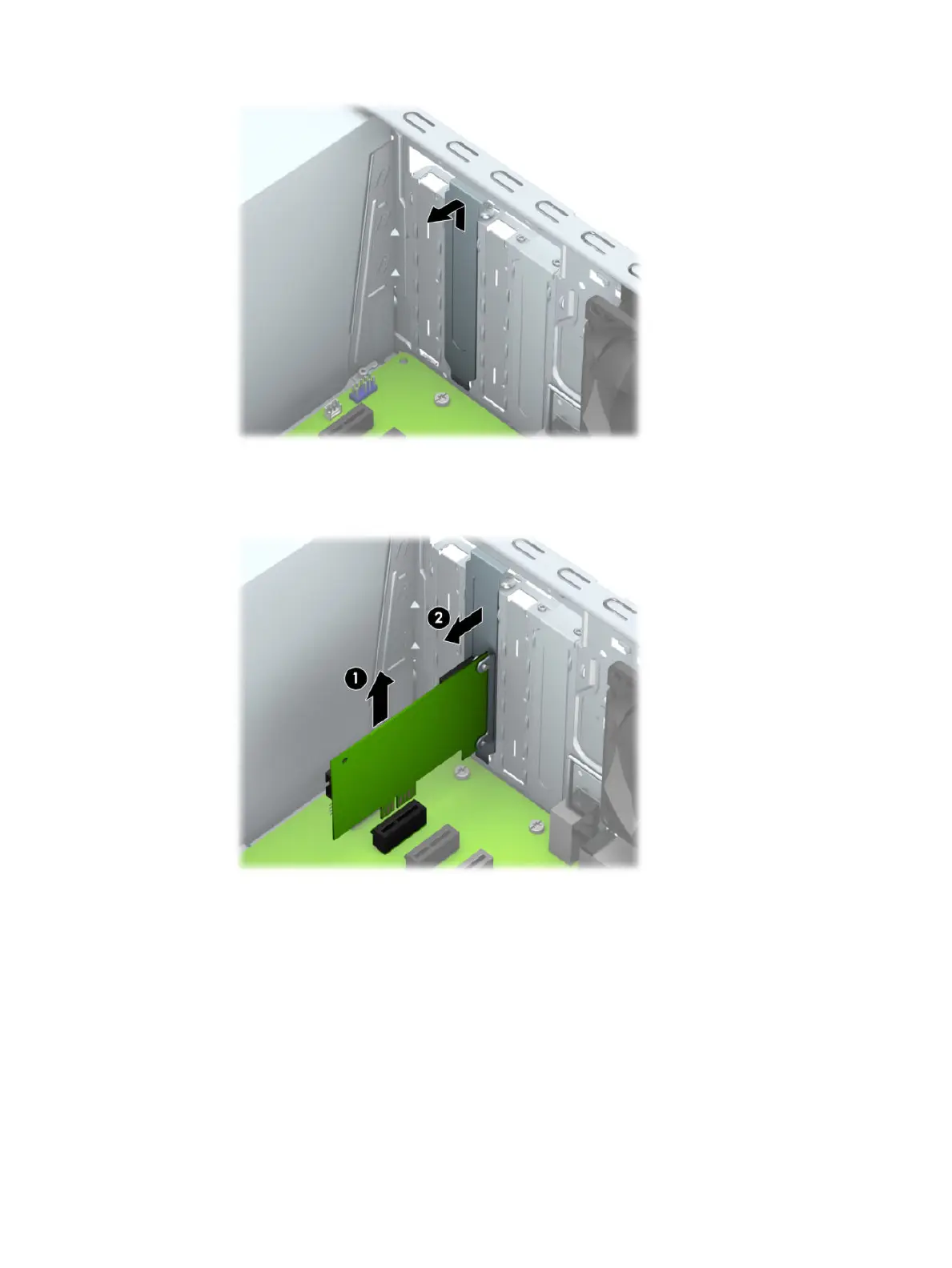 forth until the connectors pull free from the socket. Lift the card straight up (1) then away from the