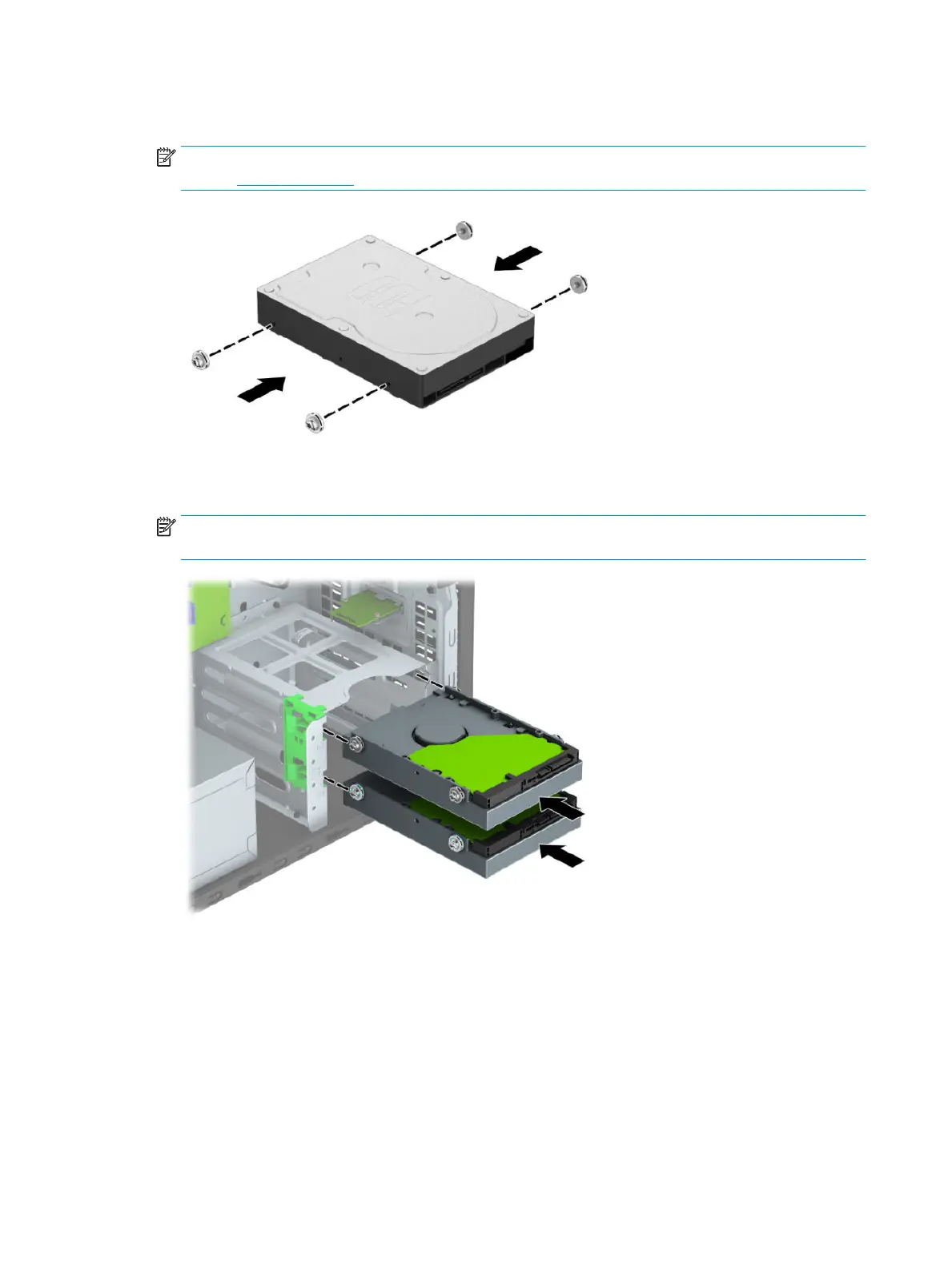 NOTE: 3.5-inch hard drive shown. The bottom bay supports up to two 2.5-inch hard drives installed