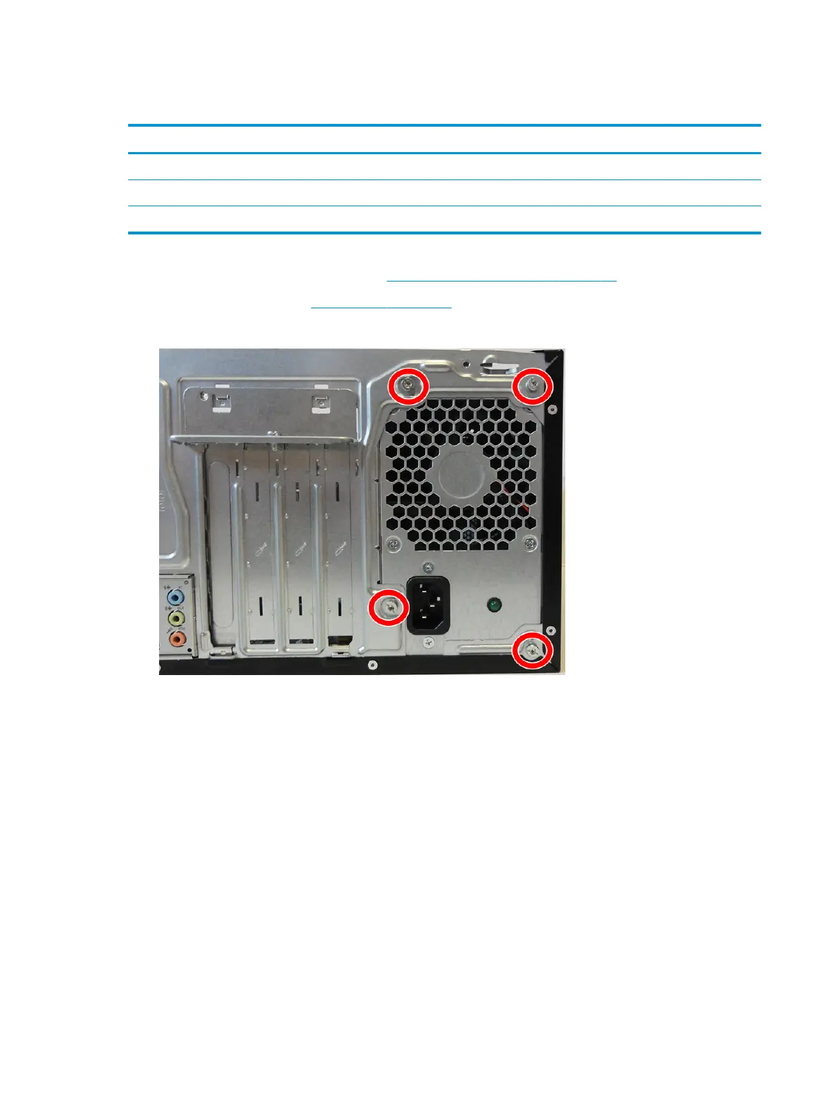 3. Remove the four silver Torx T15 screws that connect the power supply to the rear of the chassis.