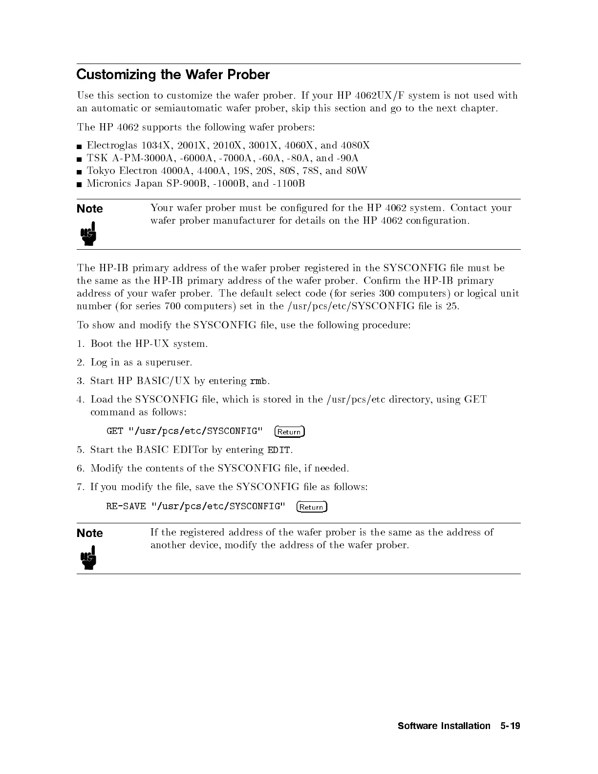 The HP-IB primary address of the wafer prober registered in the SYSCONFIG le must be