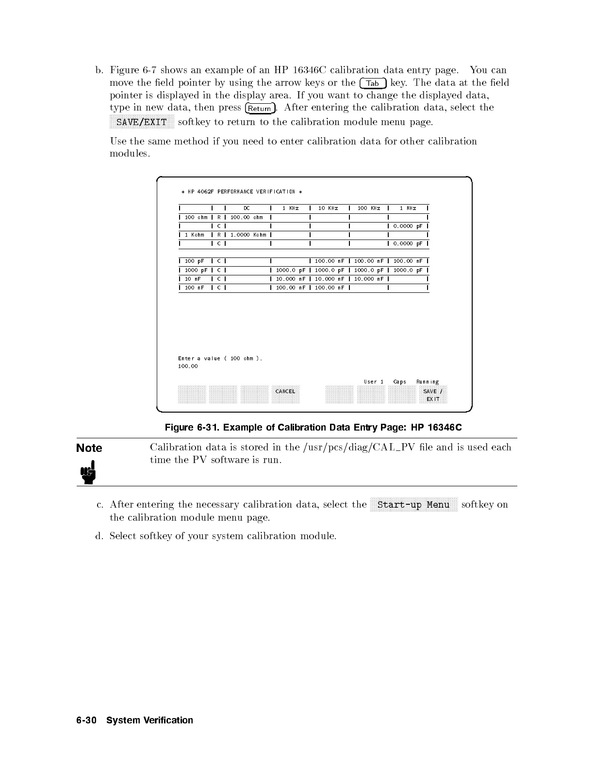 b. Figure 6-7 shows an example of an HP 16346C calibration data entry page. You can