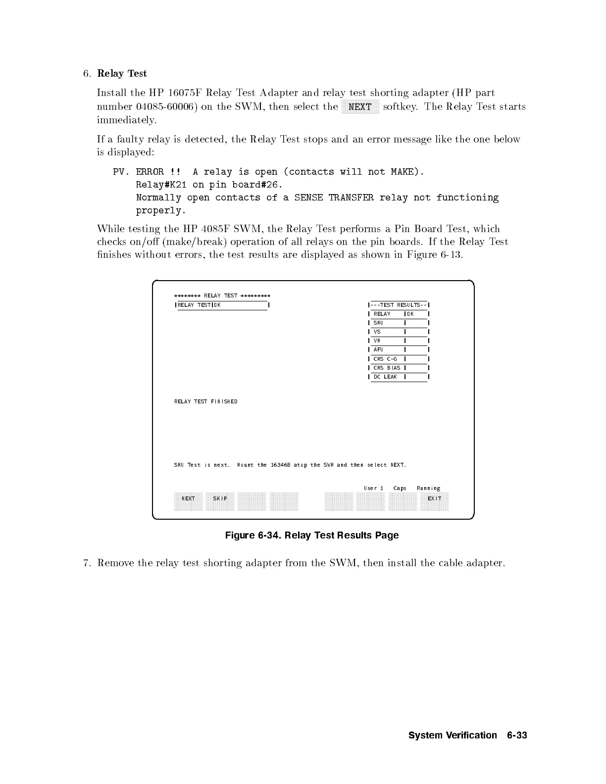 While testing the HP 4085F SWM, the RelayTest p erforms a Pin Board Test, which
