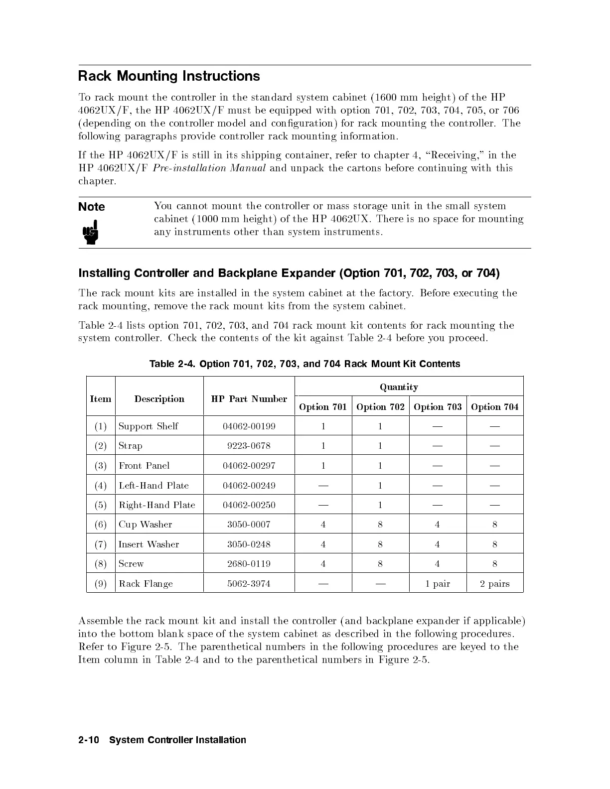 system controller. Check the contents of the kit against Table 2-4 before you pro ceed.