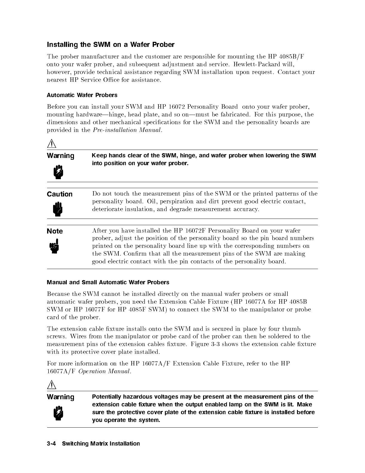 SWM or HP 16077F for HP 4085F SWM) to connect the SWM to the manipulator or probe