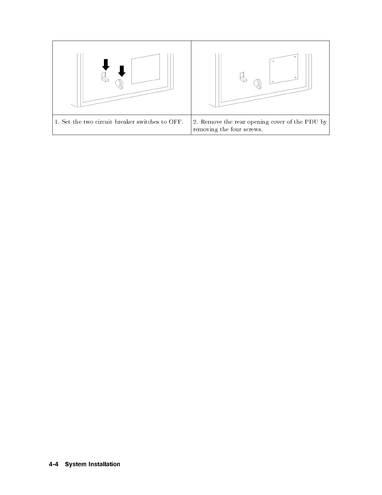 1. Set the two circuit breaker switches to OFF. 2. Remove the rear opening cover of the PDU by
