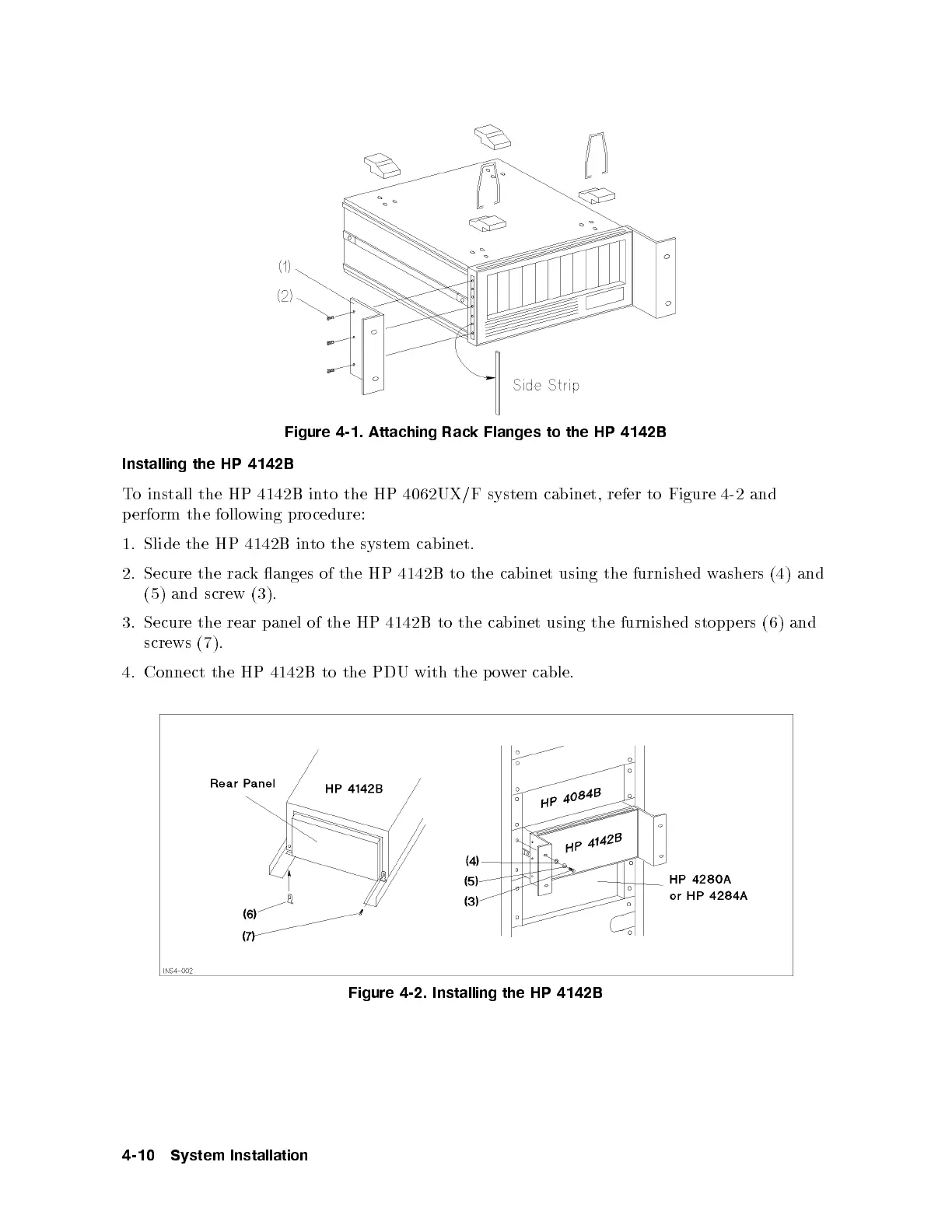 To install the HP 4142B into the HP 4062UX/F system cabinet, refer to Figure 4-2 and
