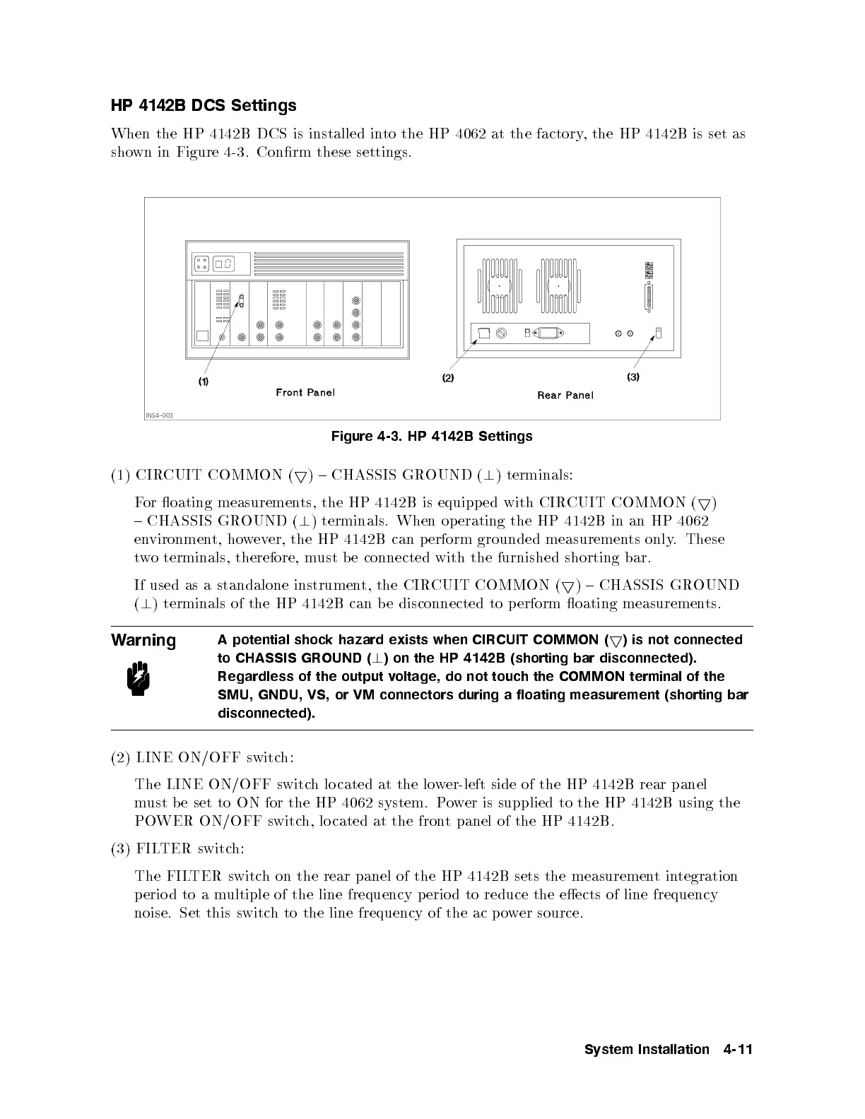 ) terminals. When op erating the HP 4142B in an HP 4062