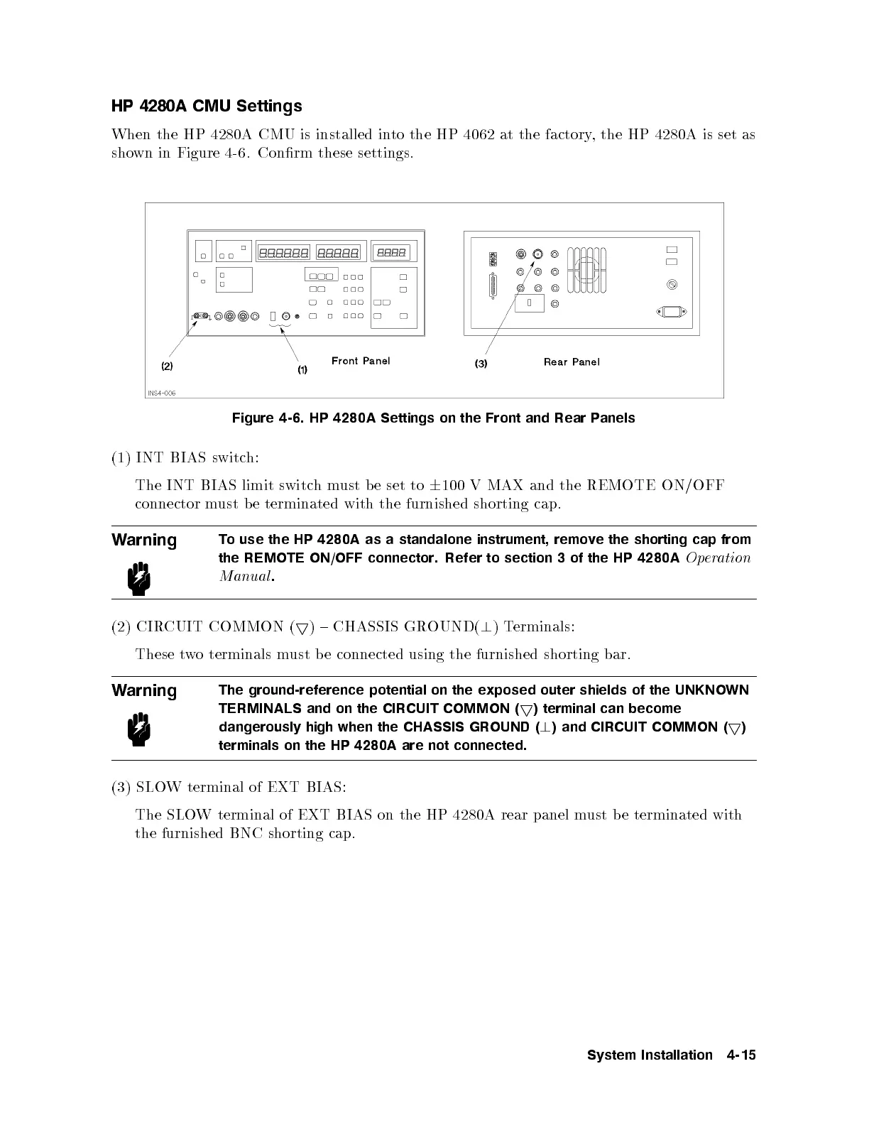 Figure 4-6. HP 4280A Settings on the Front and Rear Panels