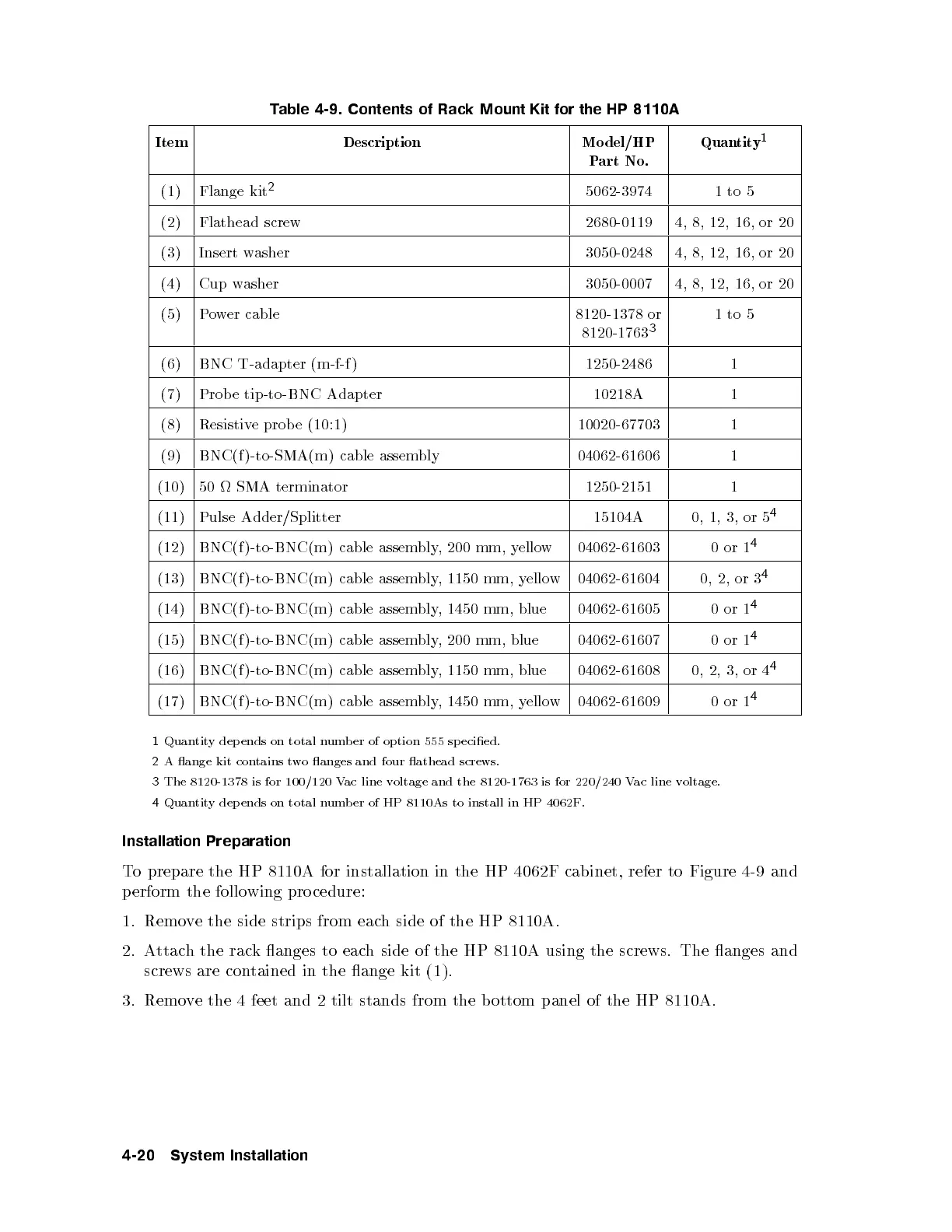 Quantity dep ends on total numb er of HP 8110As to install in HP 4062F.