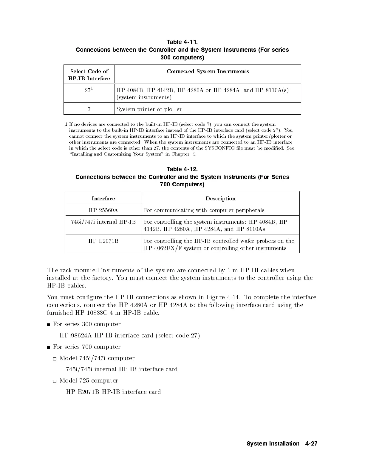 instruments to the built-in HP-IB interface instead of the HP-IB interface card (select co de 27). You