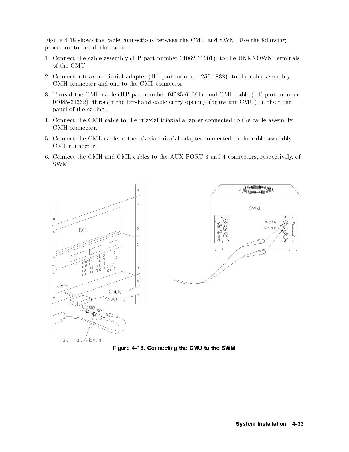 Figure 4-18 shows the cable connections between the CMU and SWM. Use the following