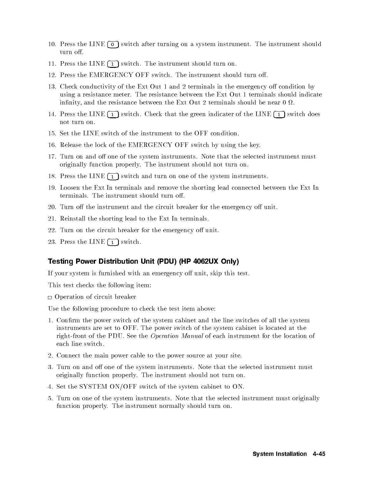 instruments are set to OFF. The p ower switch of the system cabinet is lo cated at the