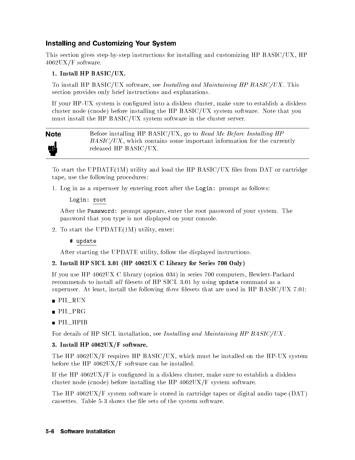 This section gives step-by-step instructions for installing and customizing HP BASIC/UX, HP