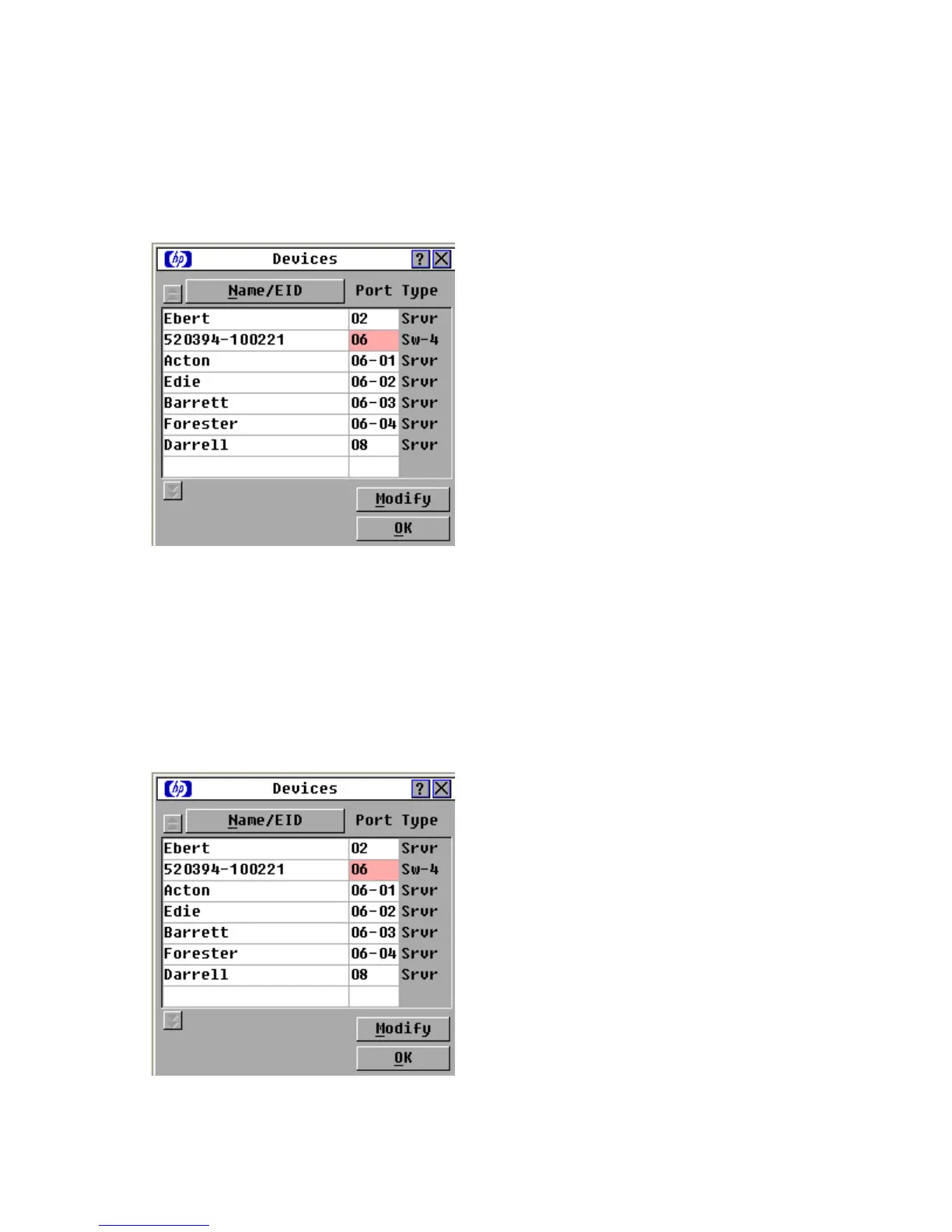the number of ports on the Compaq Server Console Switch through the Device Modify dialog box.