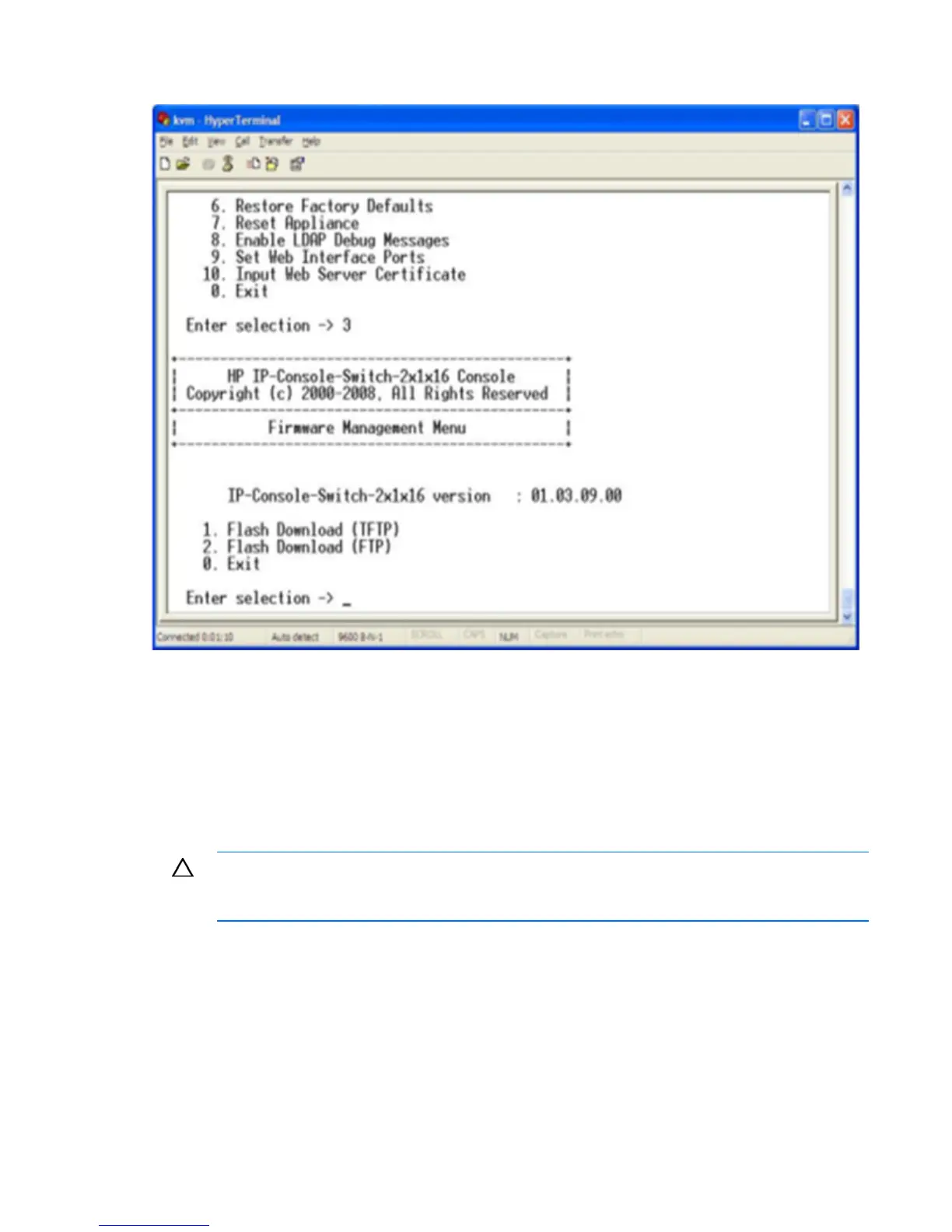 CAUTION: Do not cycle power to the console switch during this process. A loss of power
