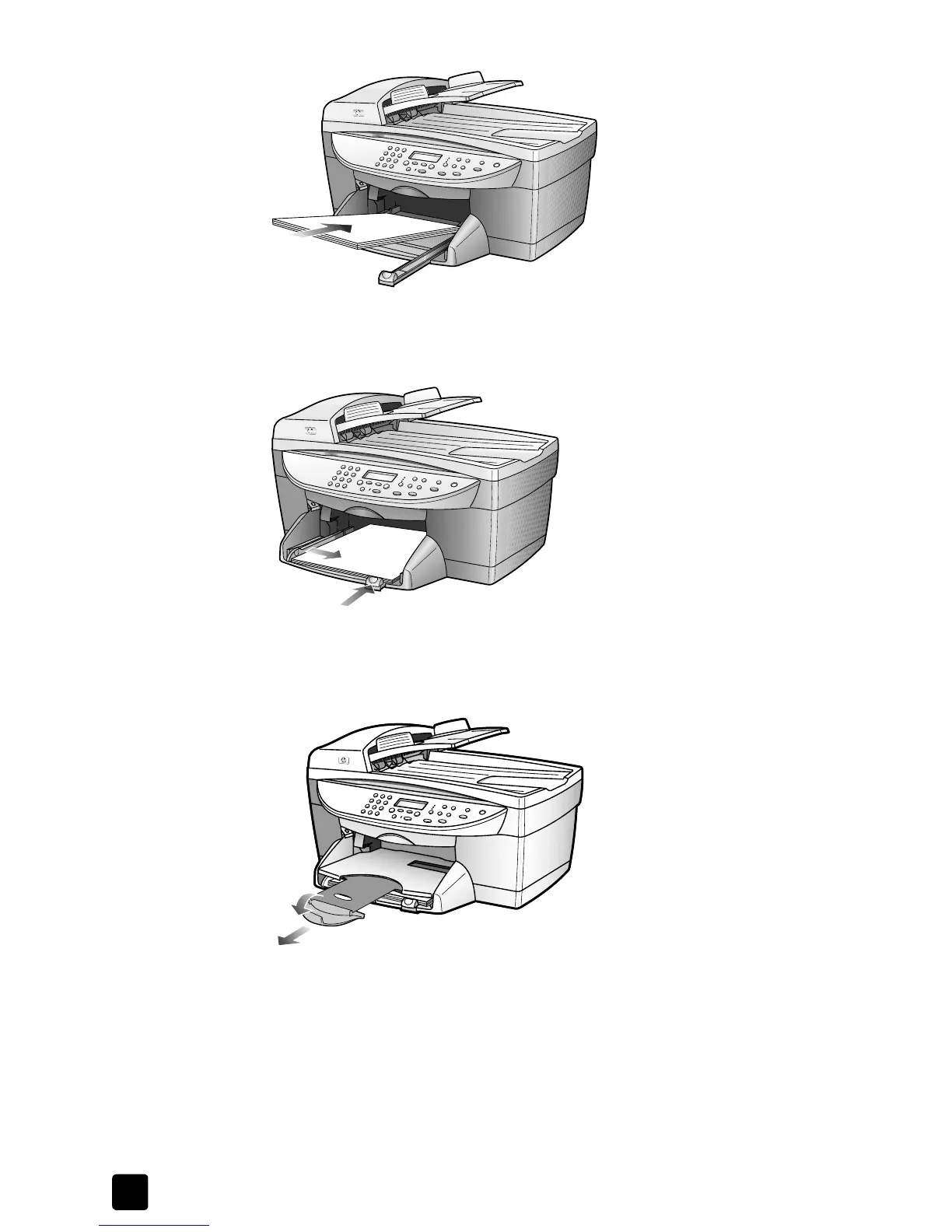 6 To prevent printed paper from falling off the tray, fully extend the output-tray