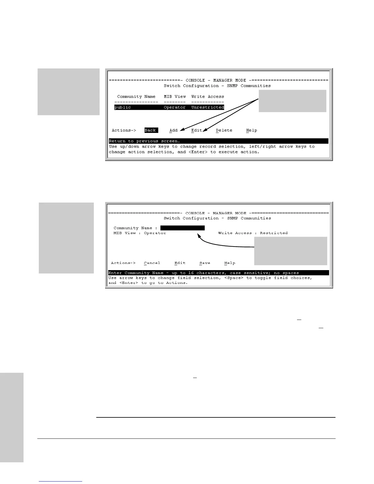 Community Name Commands Used in This Section
