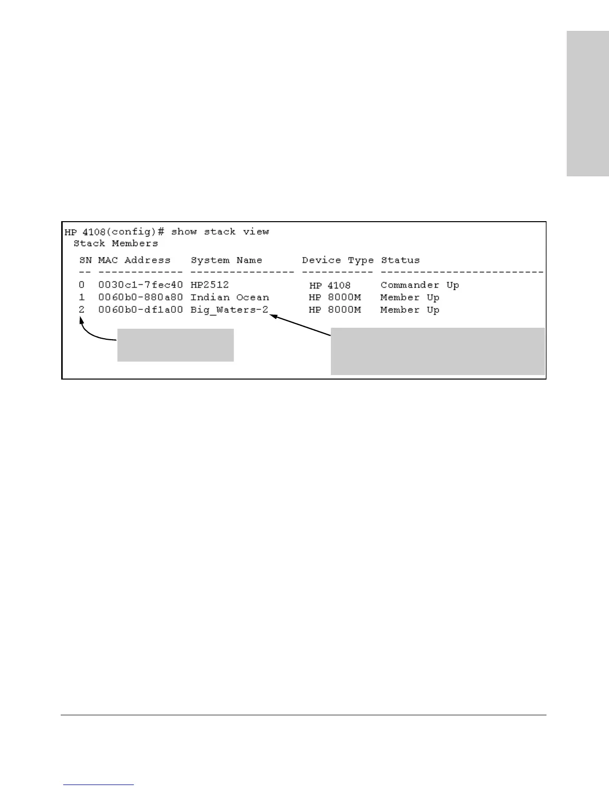 HP4108(config)# stack member 2 mac-address 0060b0-dfla00