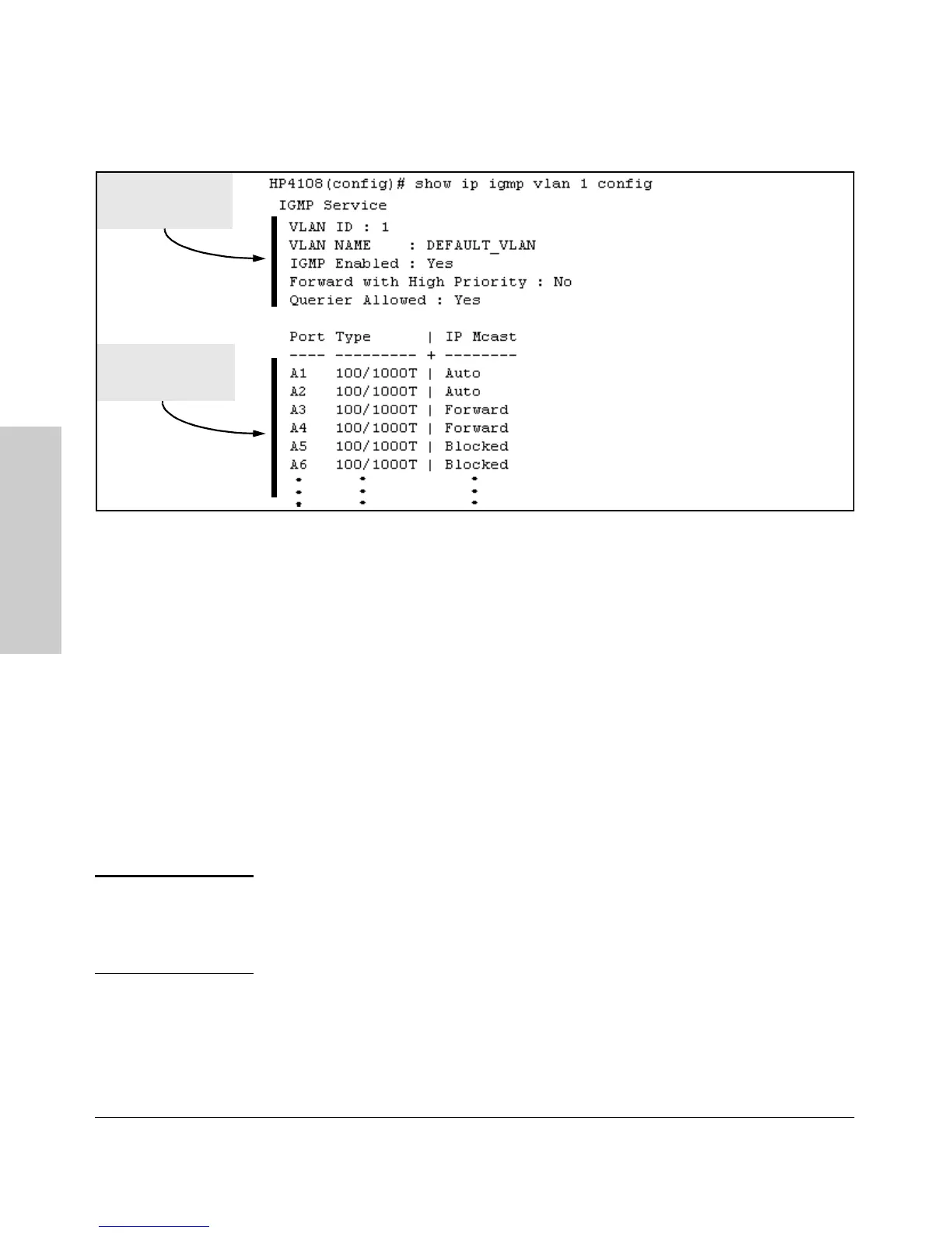 HP4108(config)# no vlan 1 ip igmp Disables IGMP on VLAN 1.