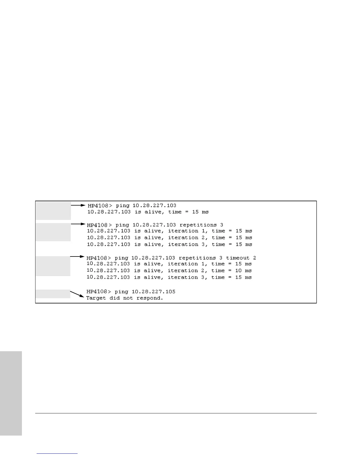 Syntax: ping <ip-address> [repetitions <1 - 999>] [timeout <1 - 256>]