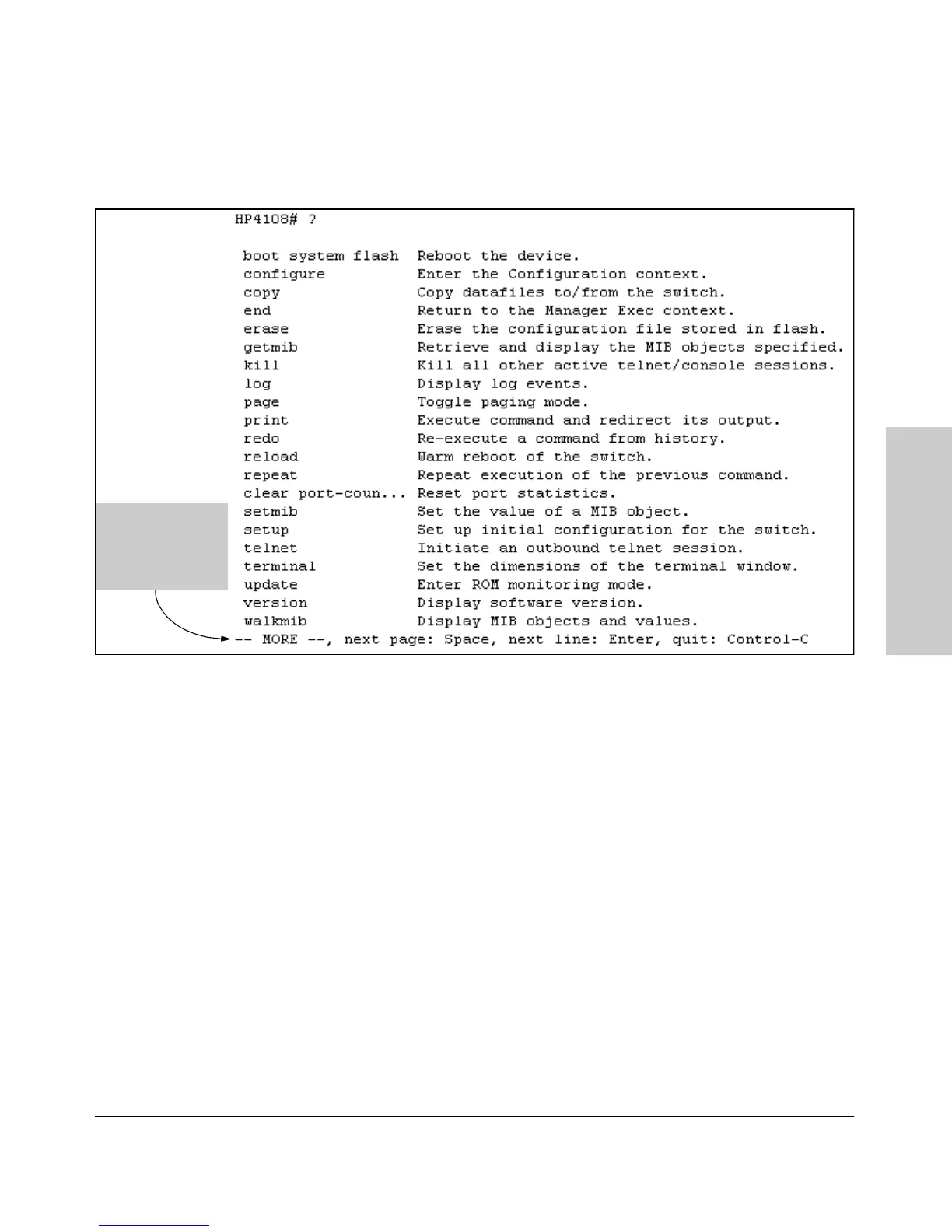next screenfull of commands, press the Space bar. To list the remaining