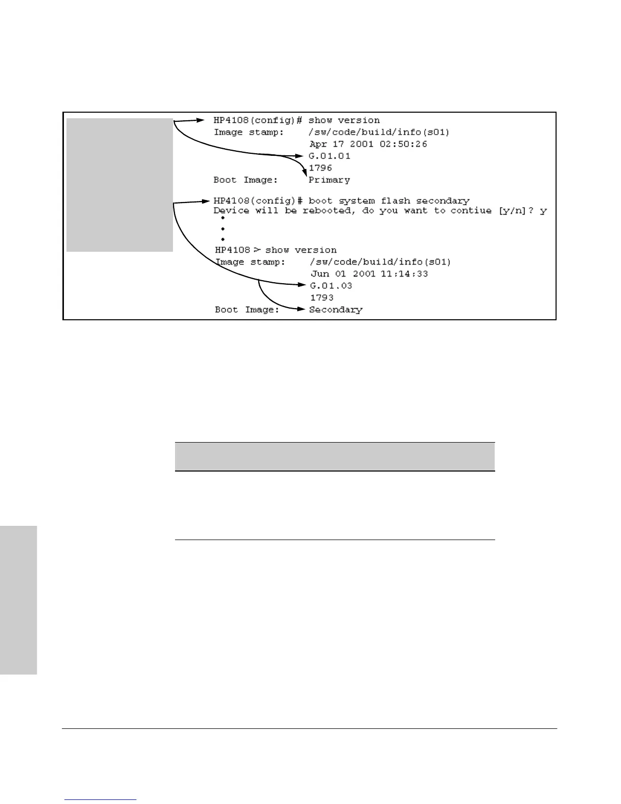 corrupted, as a result of an interruption, the switch will reboot from secondary