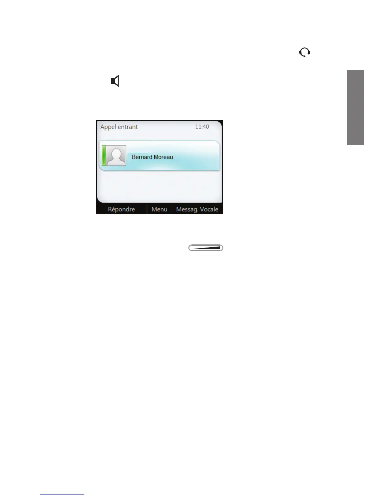 ■ Pour recevoir un appel par le biais du haut-parleur, appuyez