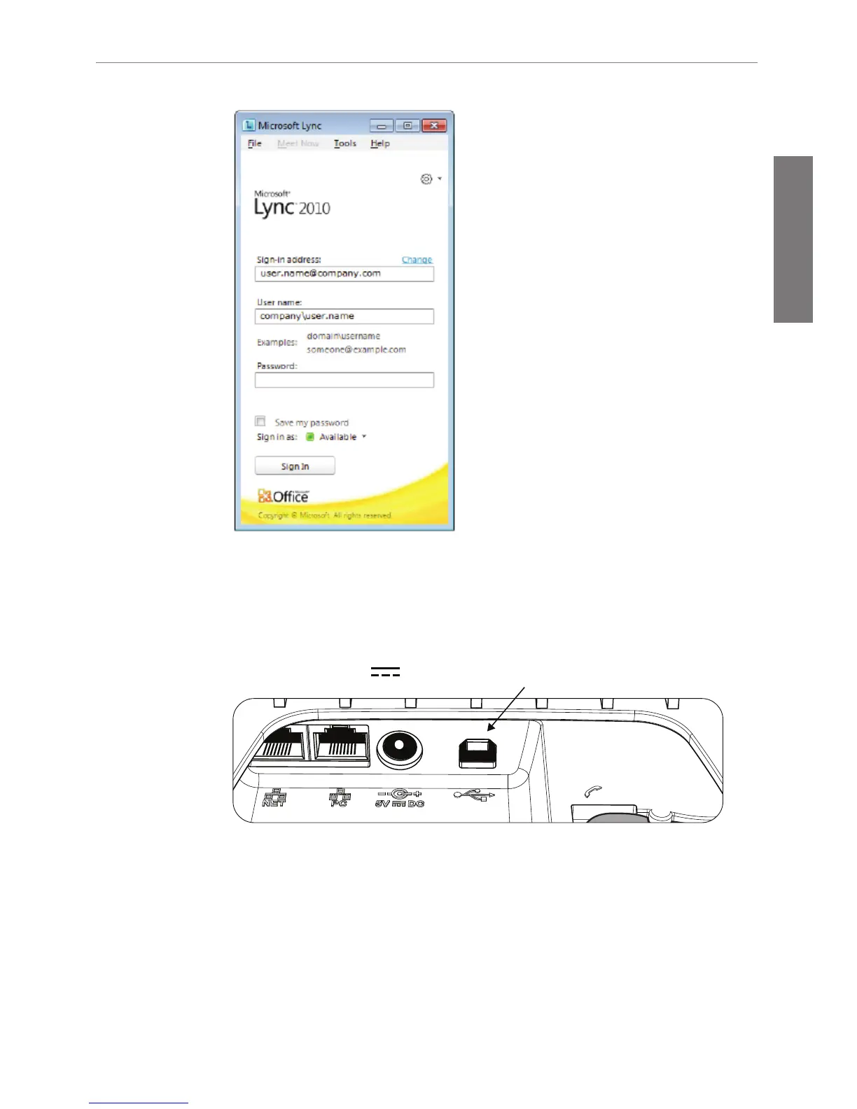 port USB A-B situé à l'arrière du téléphone.