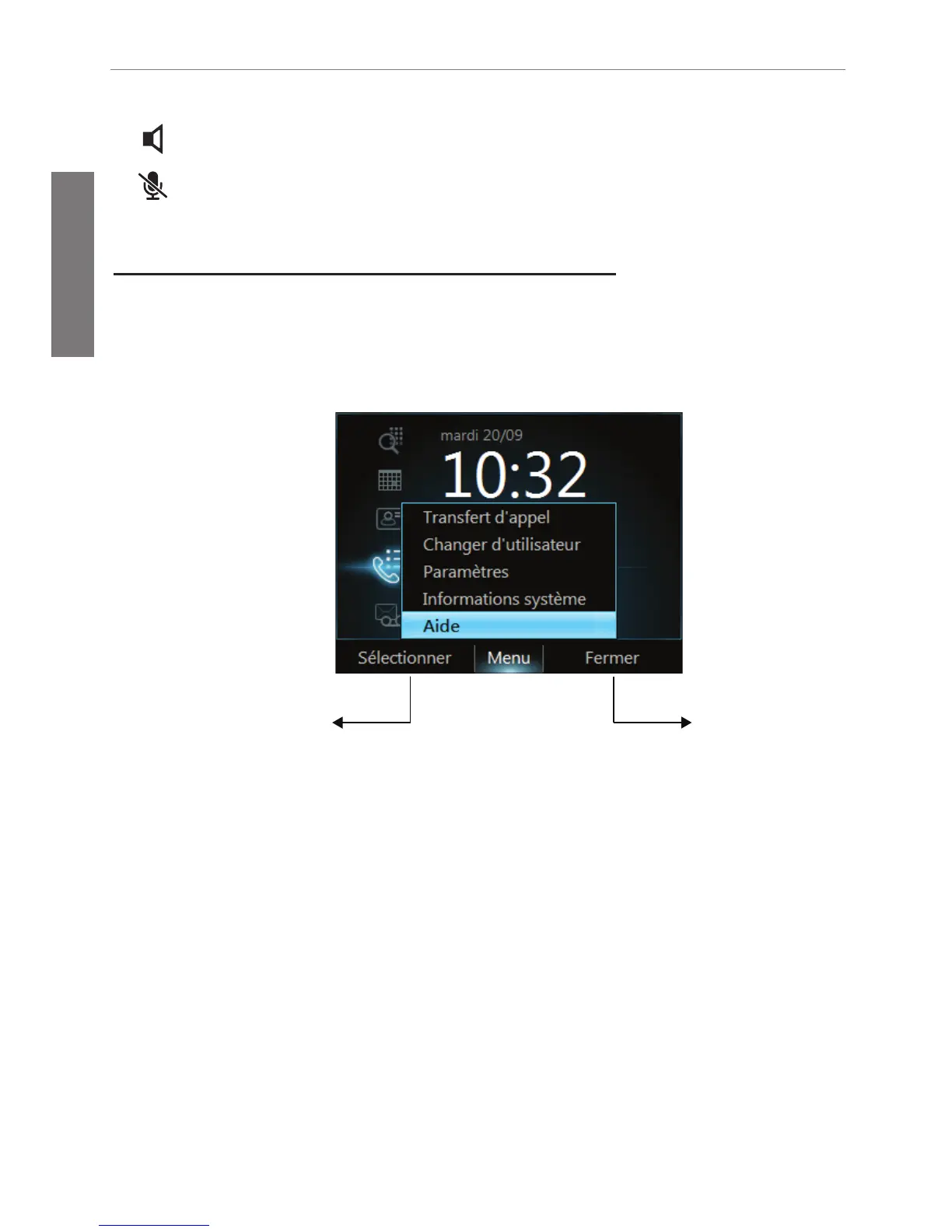 Touche de haut-parleur : permet d'activer/désactiver le haut-parleur.