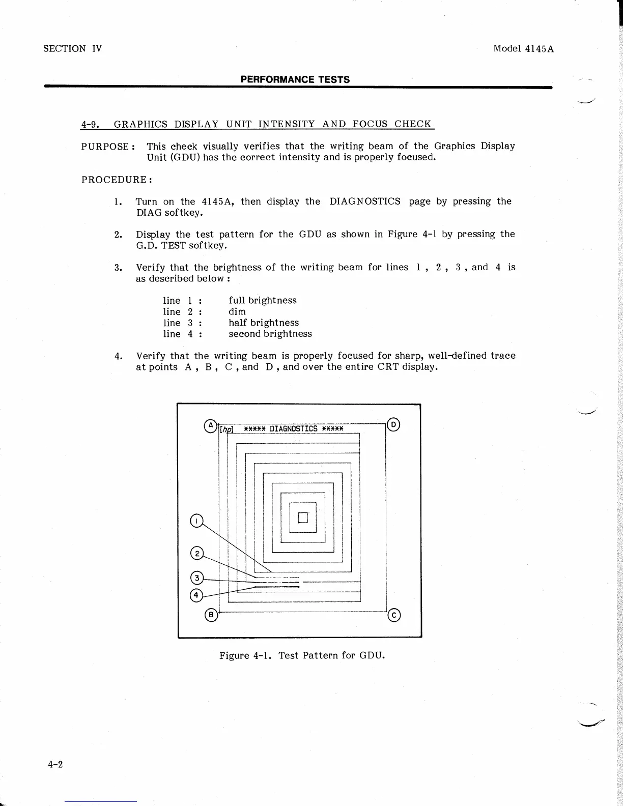HP 4145A - 4-9. Graphics Display Unit Intensity and Focus Check
