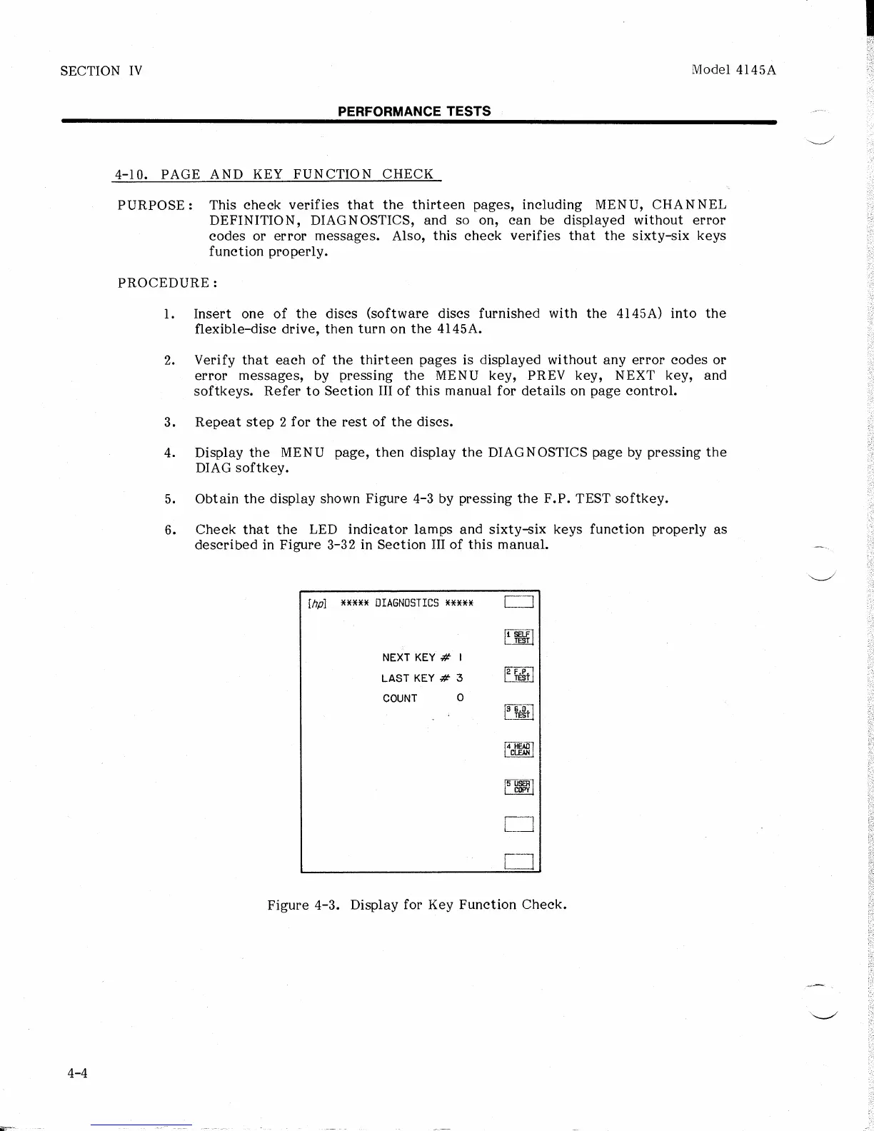 HP 4145A - 4-10. Page and Key Function Check