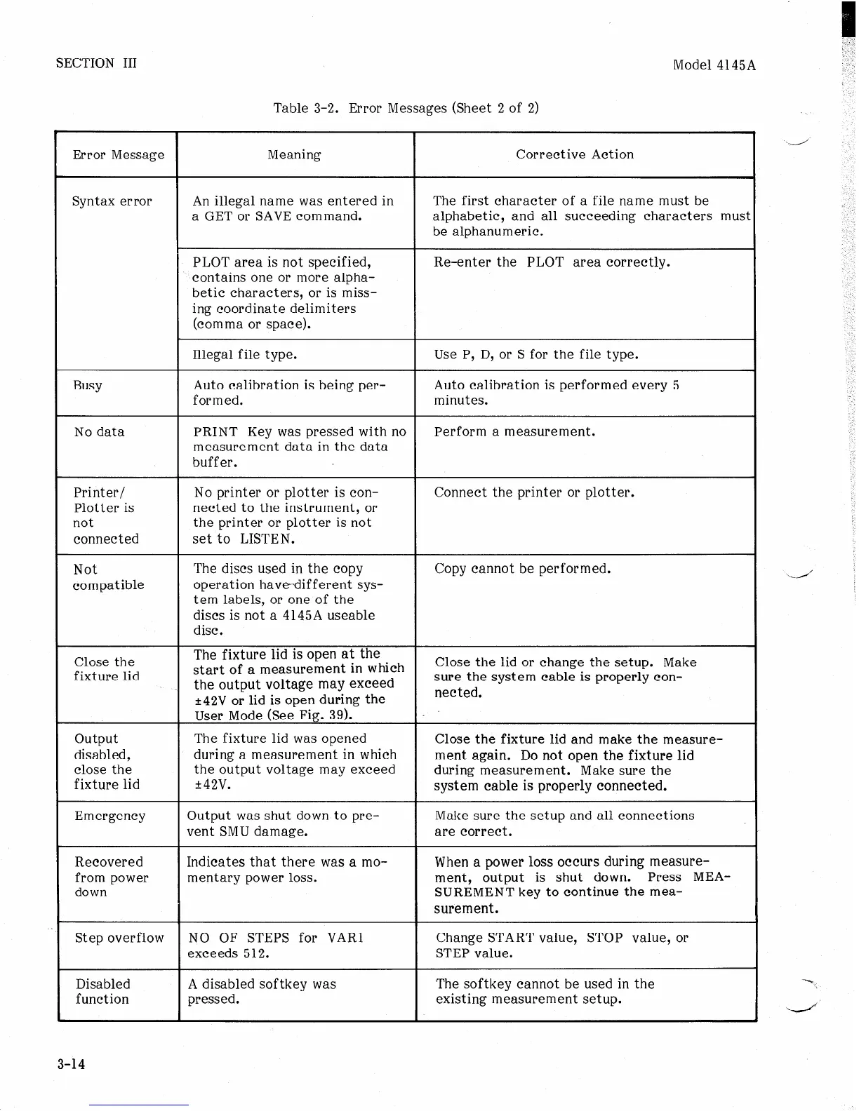 Table 3-2. Error Messages (Sheet 2 of 2)
