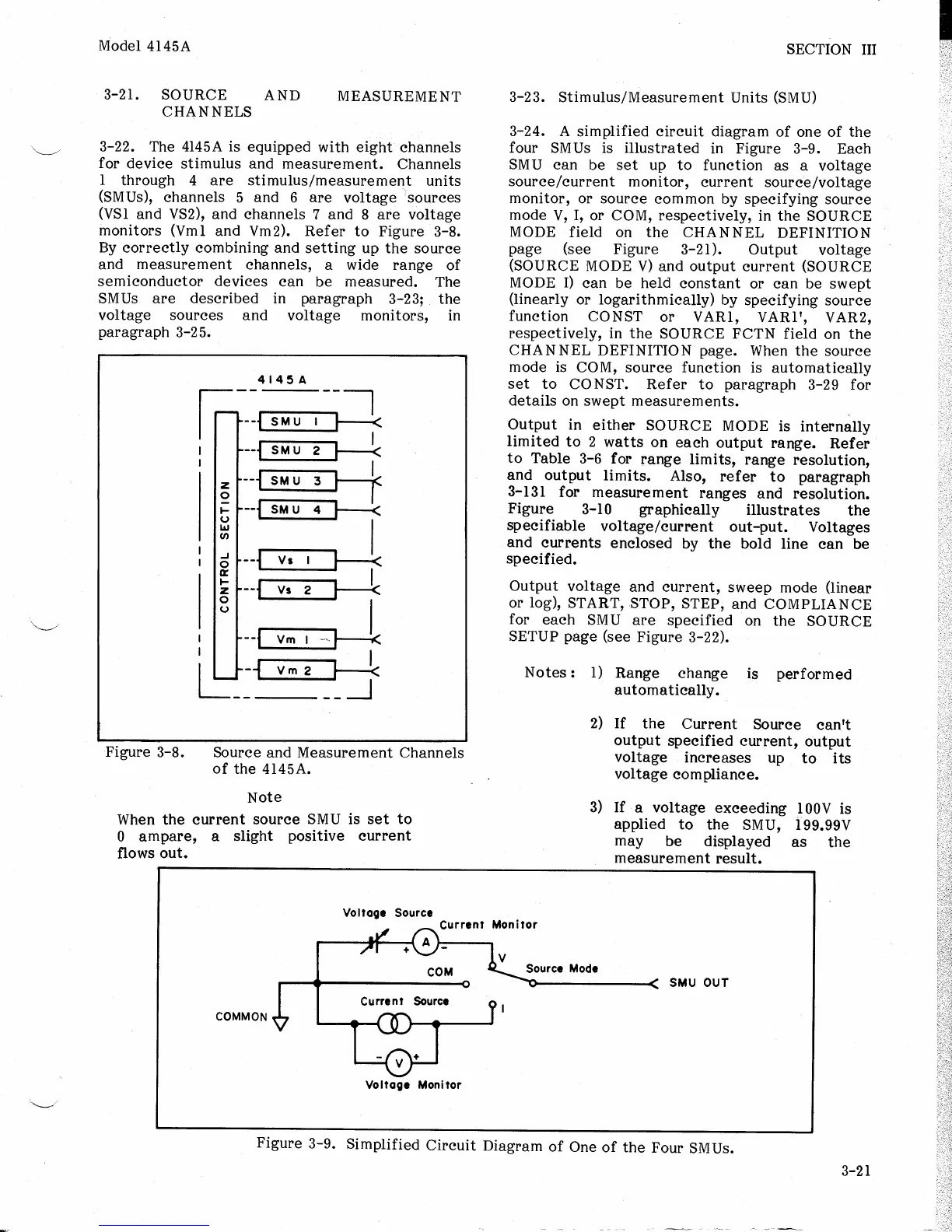 HP 4145A - 3-21. Source and Measurement Channels; 3-23. Stimulus;Measurement Units (SMU)