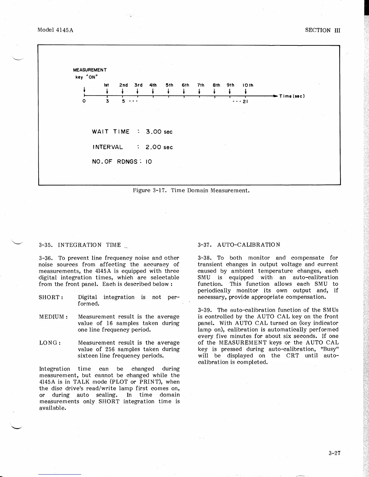 HP 4145A - 3-35. Integration Time; 3-37. Auto-Calibration