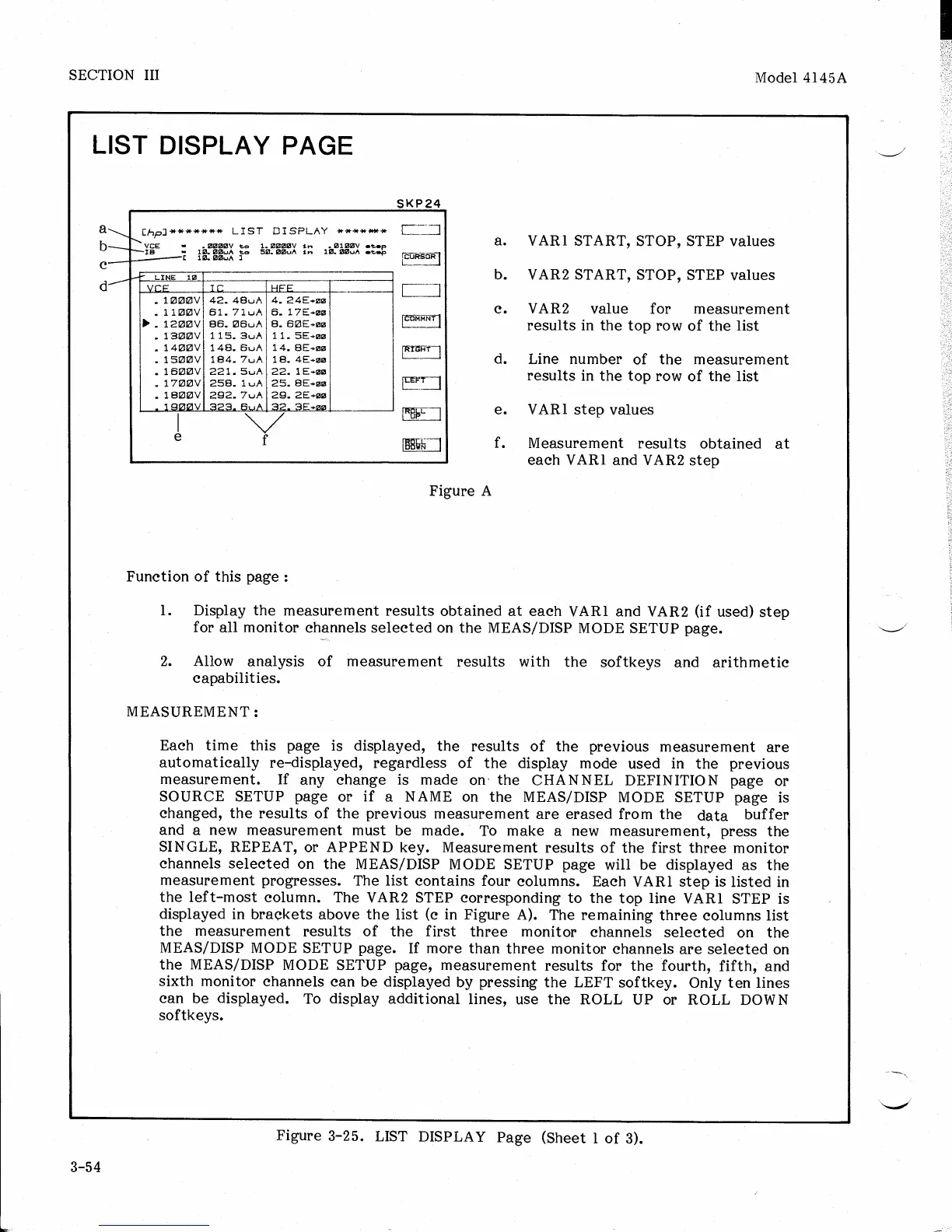 HP 4145A - 3-55. LIST DISPLAY Page